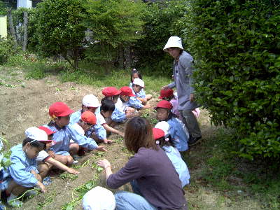 「さつまいも掘り」に年長児が香川県立石田高等学校へ行きました。