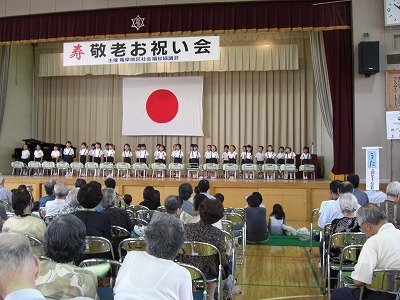 年長組のお友達が、亀阜地区の敬老お祝い会に参加し、歌やピアニカの演奏をしました。
