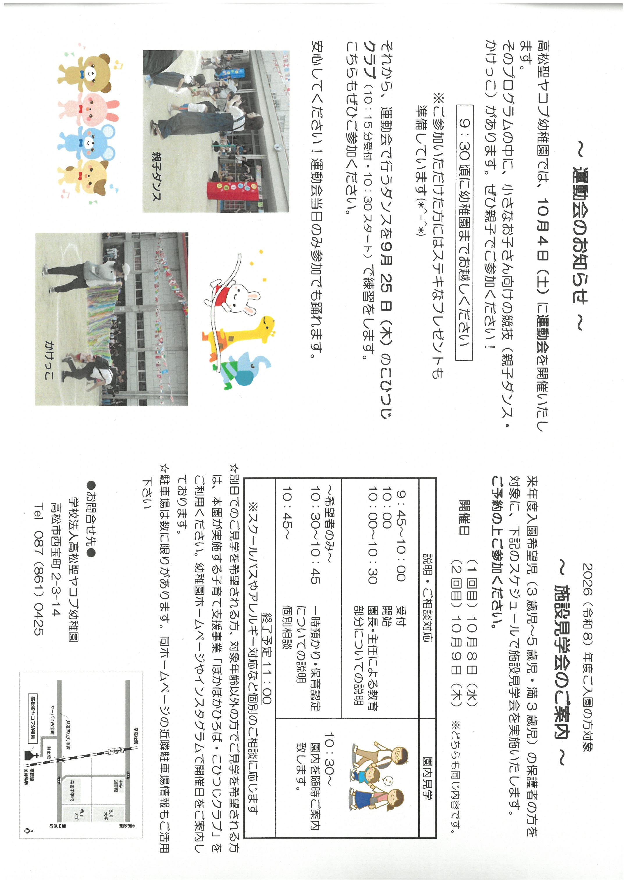 高松聖ヤコブ幼稚園では、10月4日(土)に