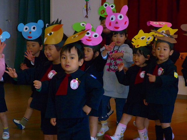 両親参観で披露したオペレッタを、みんなで見せ合いっこしました。