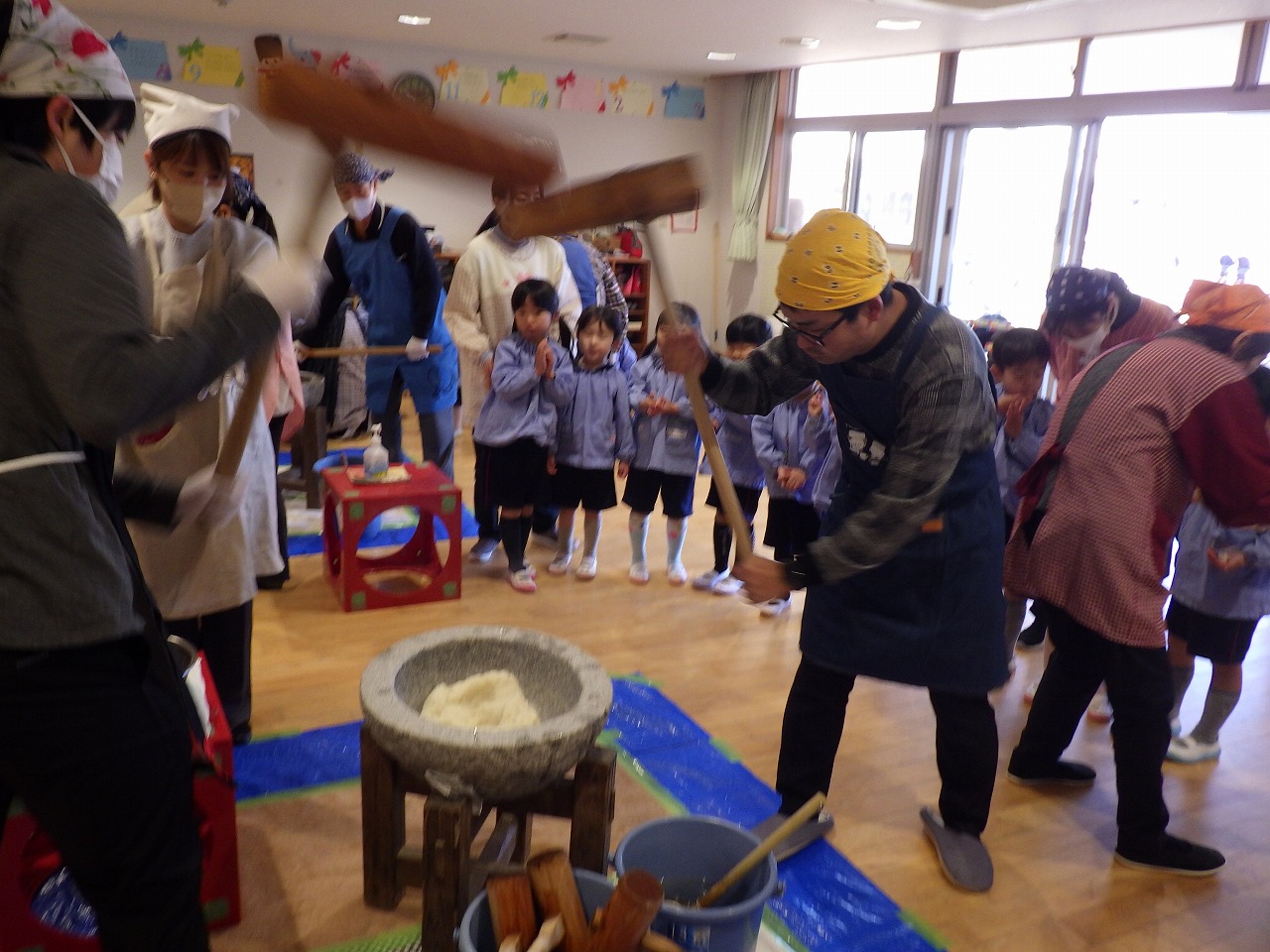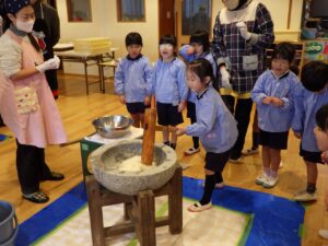 今日は幼稚園のもちつきでした。