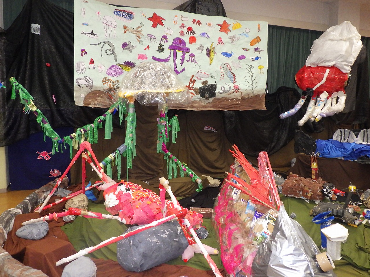 自分たちが知っている海の生き物を作ろうというグループもあれば