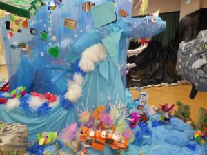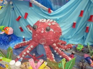 深海にすんでいる生き物がいい!と製作を始めたクラスもあり…。