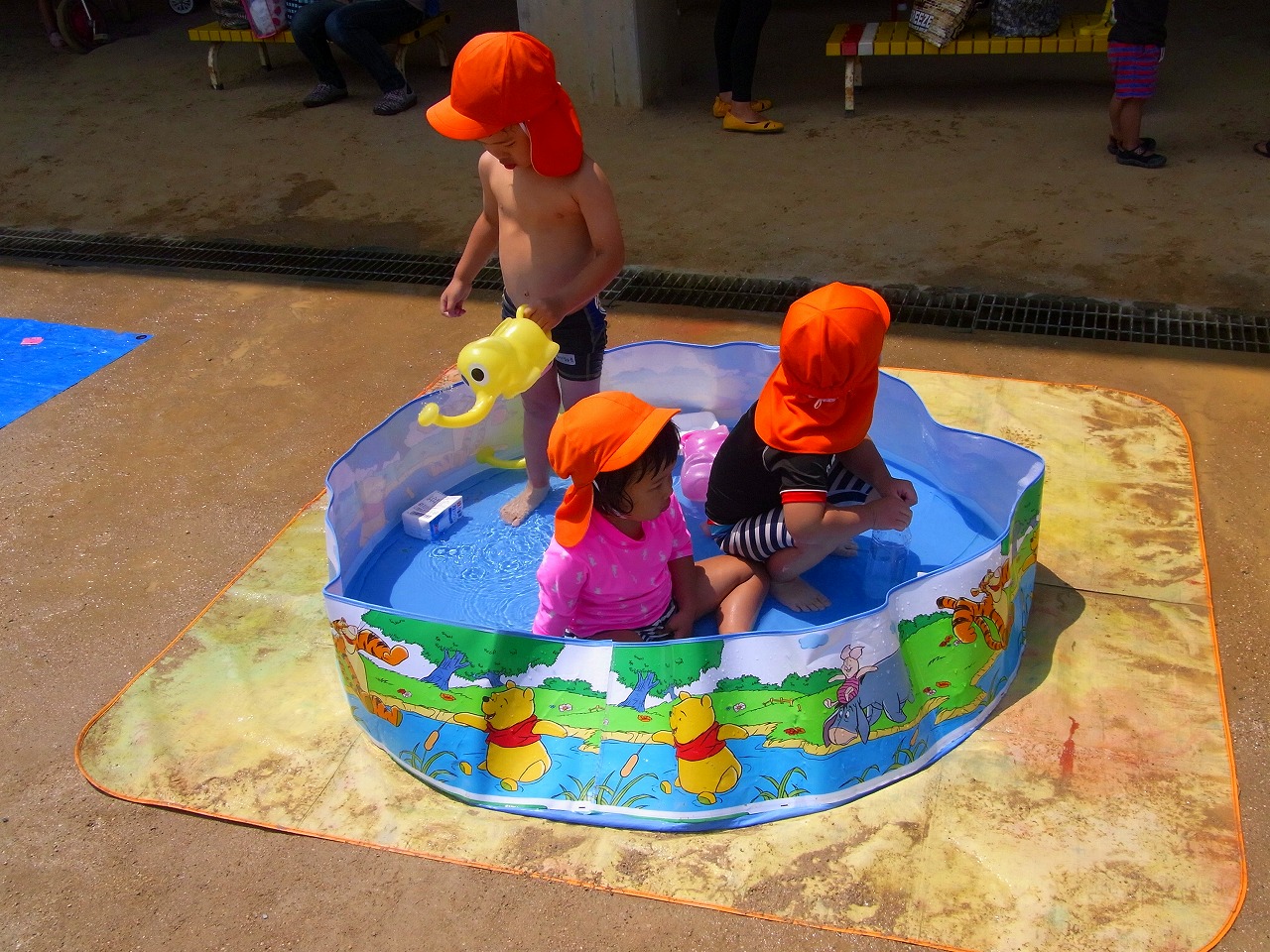 こひつじクラブに混じって、満3歳児のクラスも水遊び・・・