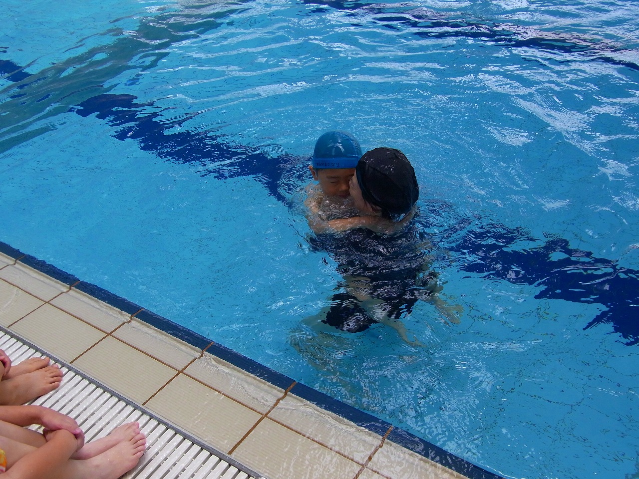 さて、1回目の水泳教室終了の前に、大人用のプールにやって来ました。