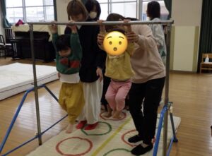 この日デビューの室内アスレチック遊具や鉄棒や跳び箱