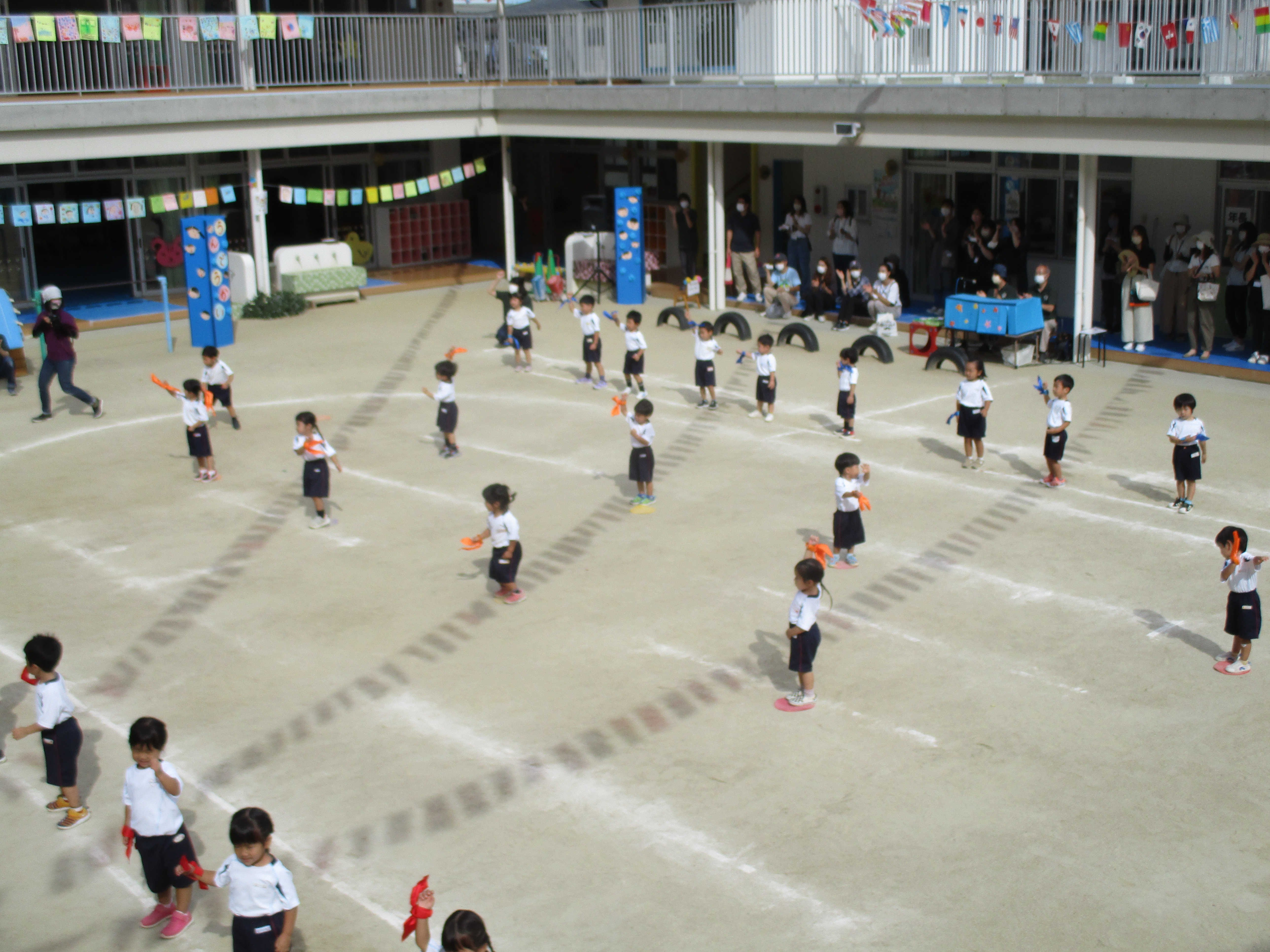 初めての運動会の年少さんとつぼみ組さん。