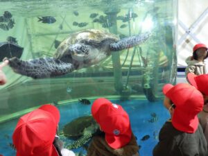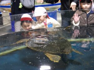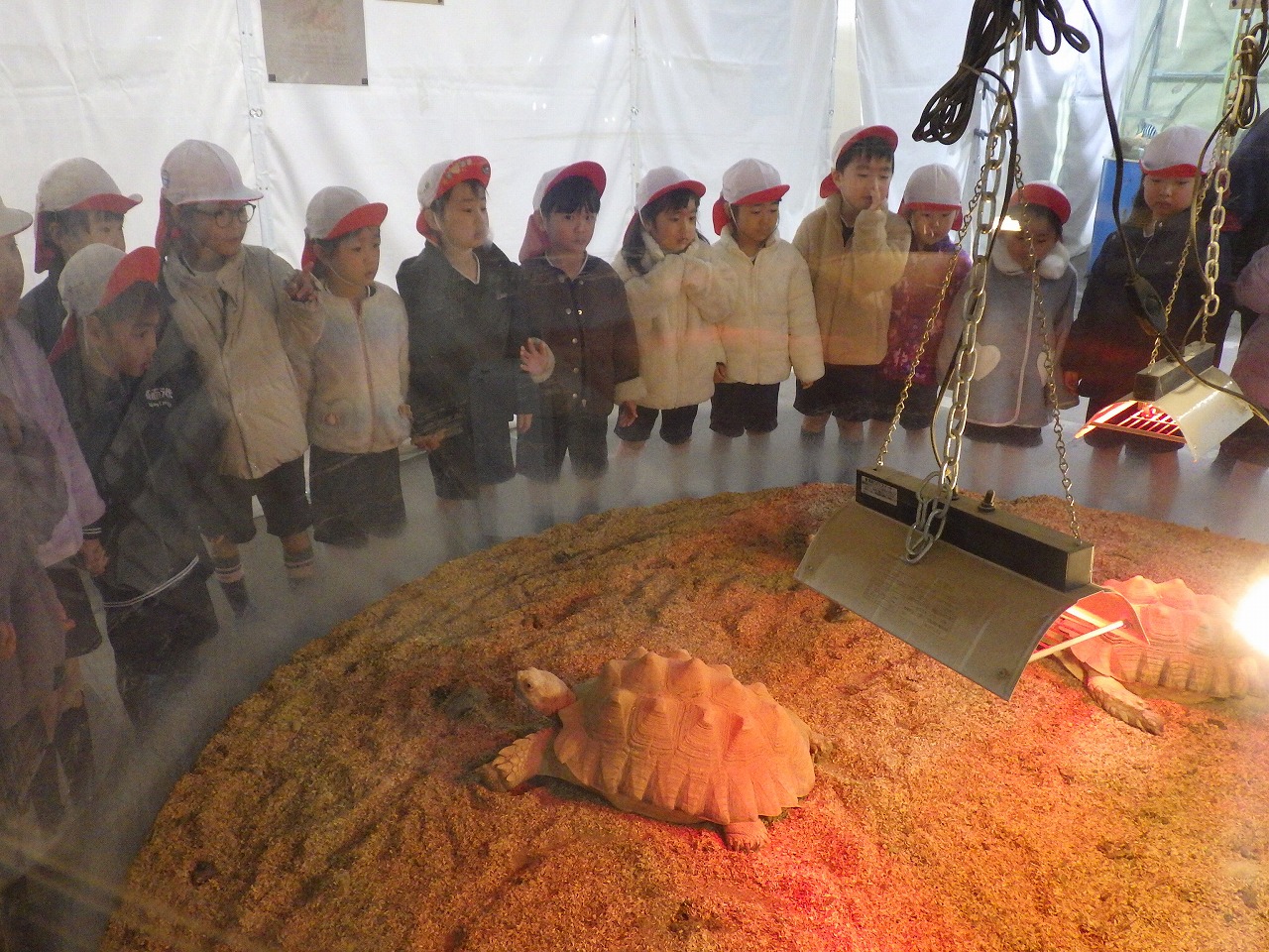 館内に入ってすぐいた「リクガメ」に夢中…。